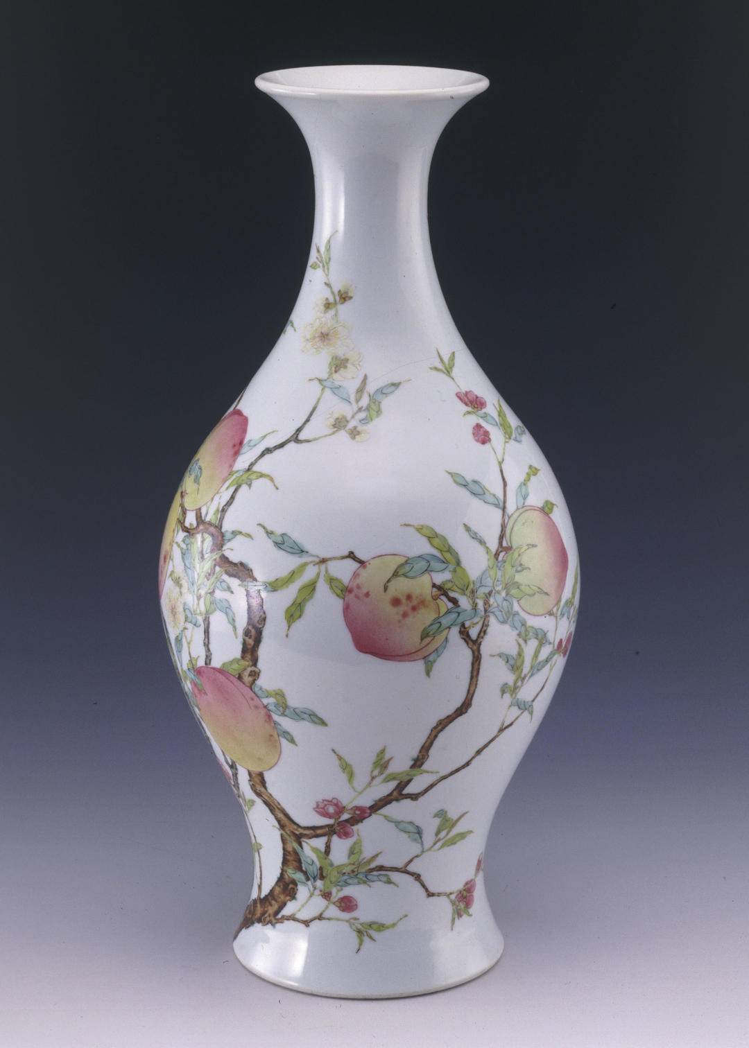 网友李女士向扬子晚报 / 紫牛新闻记者介绍,这件粉彩蝠桃纹橄榄瓶为世界仅存孤品,近代因战乱流落海外,曾被美国富豪用作灯座,2002年在香港拍卖会上由张永珍女士购得后捐赠给上海博物馆。