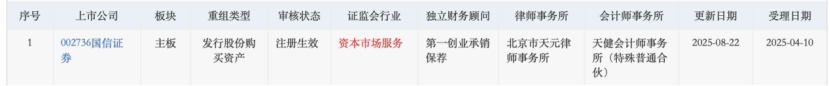 具体来看,2024年9月国信证券披露收购预案,12月初披露草案,同月下旬交易事项获得深圳市国资委批复以及通过股东大会审议。直至今年4月该交易事项才步入交易所审核流程。监管审核进展方面,项目经历一轮问询后在6月19日顺利上会。最终,项目从受理到获得批文耗时4个月。