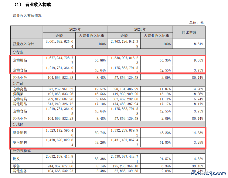 公司在年报中表示,随着全球宠物拥有率的持续提高、宠物食品销售的扩大、健康福利行业的深化发展以及人性化养宠趋势的不可逆转,宠物已从单纯的“动物伴侣”升级为家庭中重要的情感成员,这一根本性转变驱动了消费场景的扩展与消费层级的提升。