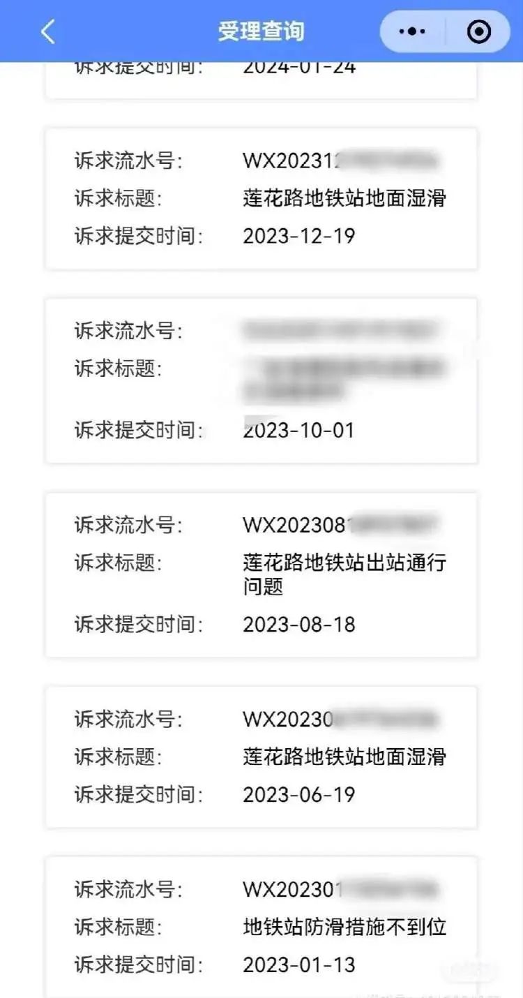 另一位网友表示,最近几年,她多次通过12345市民热线反映,莲花路地铁站进站口地面湿滑,防滑措施不到位,她也因此摔过跤。