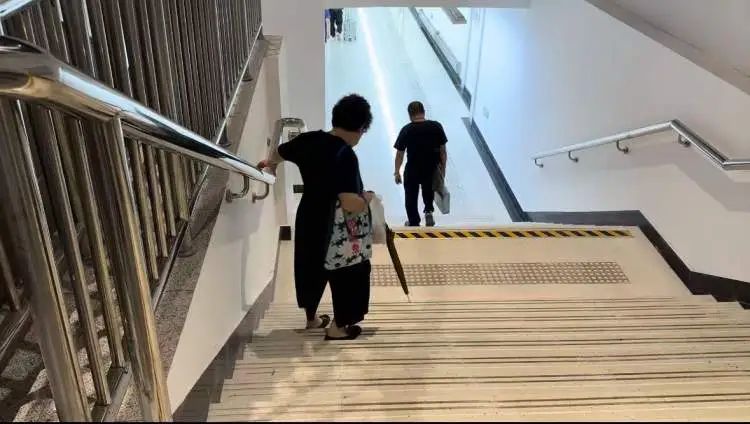 一位正在下楼梯的80岁阿婆告诉记者,她每次都是扶着一旁的扶手,一阶一阶地往下走,如果碰到雨天,她会更加小心。